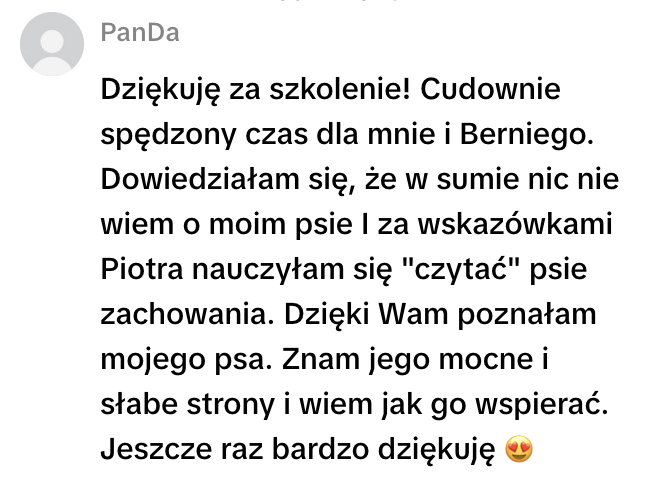 Z czasem to Ty zaczynasz omawiać interakcje swojego psa. Uczysz się samodzielnej analizy i podejmowania świadomych decyzji.
